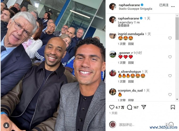 意甲第7轮赛事 德甲直播, 欧冠科莫主场作战 2-0击败尤文。目前担任科莫俱乐部董事的瓦拉内与温格、亨利一起观看赛事 ,搏击资讯足球直播瓦拉内社媒晒出合照, 篮球新闻配文:“传奇!”