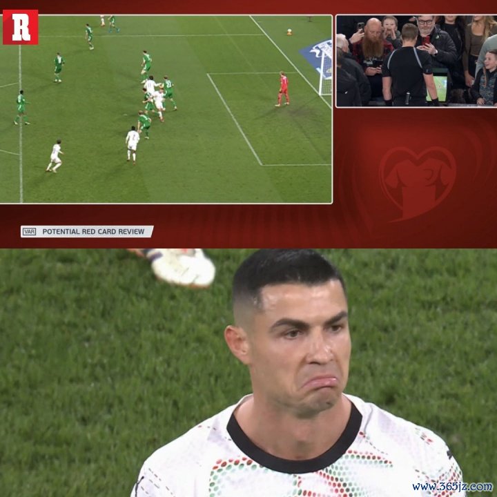 世预赛F组,葡萄牙0-2不敌爱尔兰,C罗本场在第61分钟因为肘击动作染红。
