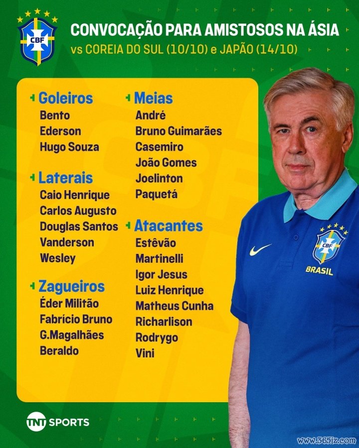 官方消息,巴西队公布了10月份国家队赛事 日的大名单。