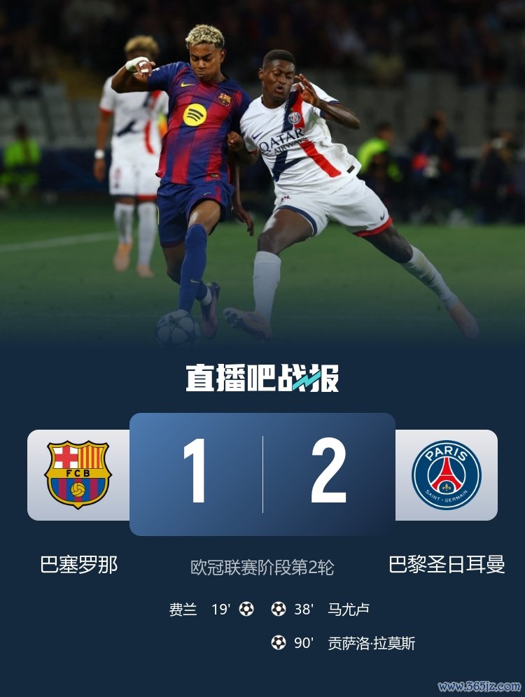 欧冠本轮焦点对阵,巴萨主场作战 1-2遭巴黎致胜球 ,本场巴黎缺兵少将,仍然拿下三分!