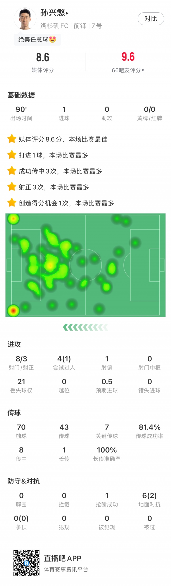 08月24日讯 美职联洛杉矶FC1-1战平达拉斯FC,孙兴慜定位球直接破门打入MLS首个得分 。此役孙兴慜多项数据全场最高,搏击资讯高清直播8射3正, 篮球新闻7次关键传送球 。