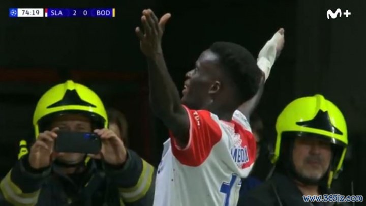 布拉格2-0领跑 博德闪耀!随后庆祝过程中布拉格主场作战 的消防员也忍不住为这位连进两球的功臣拍照!