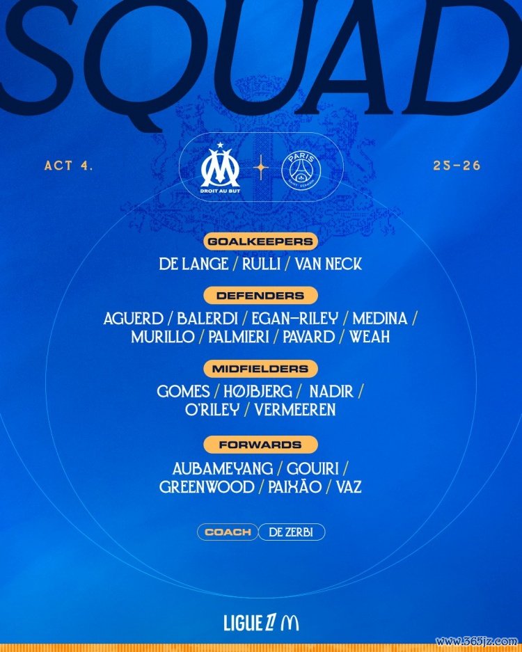 9月21日讯 北京时间明天凌晨2点45分,马赛将在法甲第5轮赛事 中主场作战 对阵巴黎,搏击资讯直播平台马赛公布了此役的球员名单。