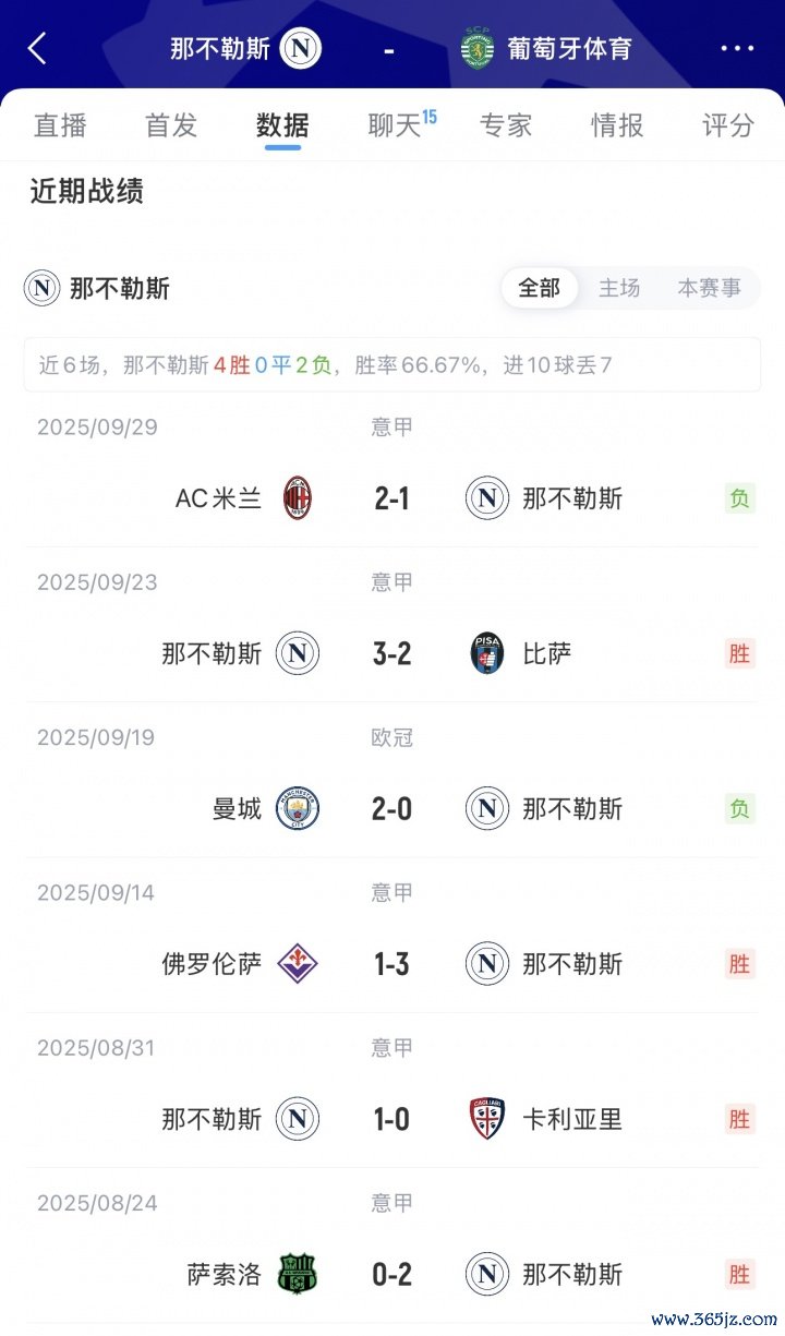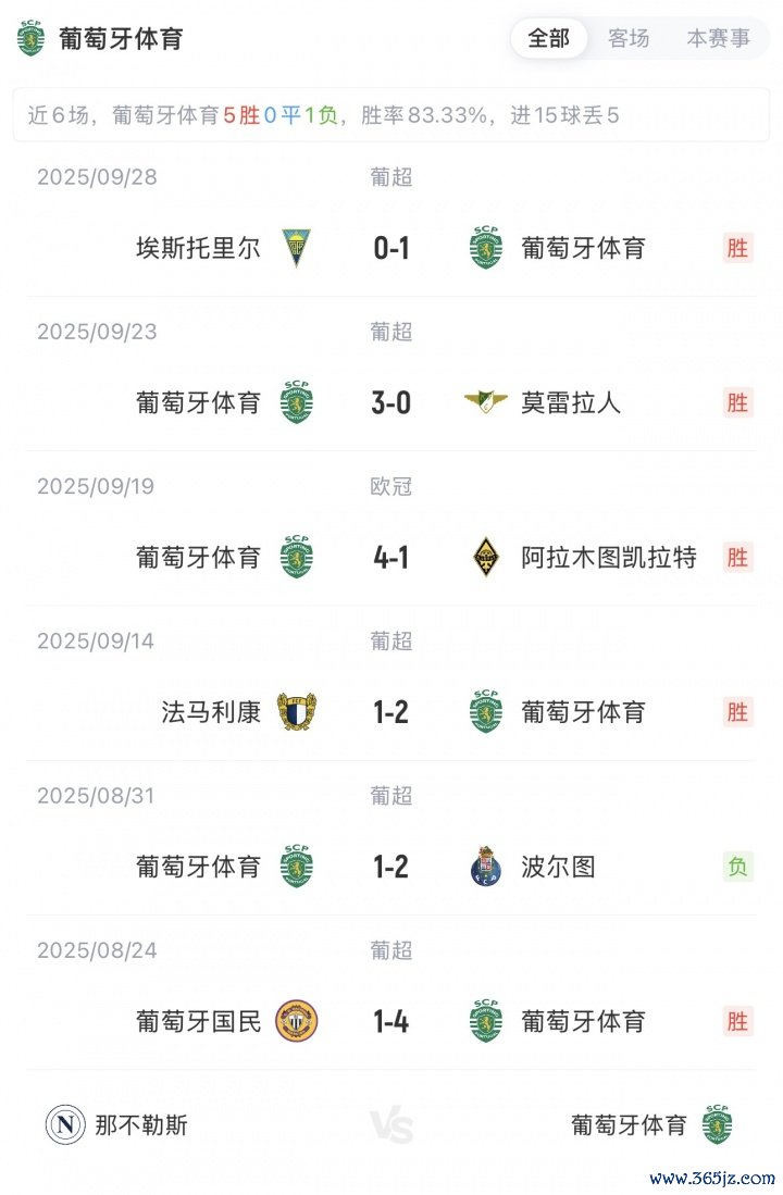 那不勒斯上一轮欧冠,0-2不敌曼城;葡萄牙体育上一轮欧冠,4-1战胜阿拉木图凯拉特!