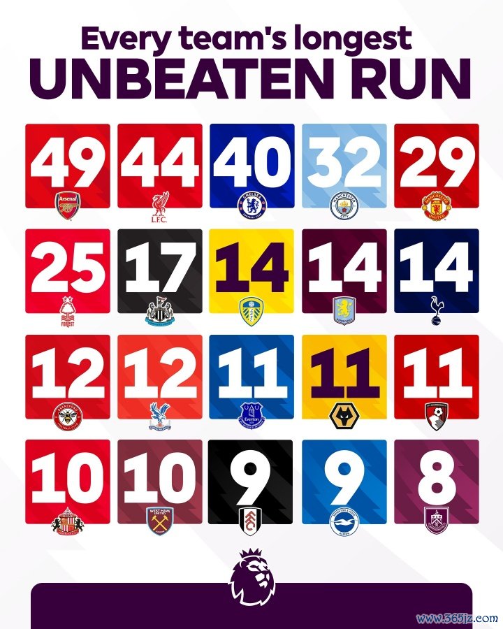 英超官方盘点了职业联赛 中每支球队目前的最长不败记录 ,搏击资讯高清直播并发问:“你觉得阿森纳的记录 会有被打破的那一天吗?”