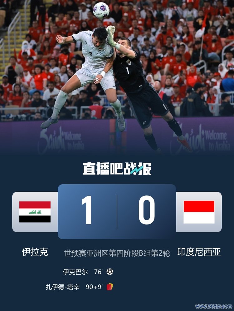 世预赛伊拉克2-0击败印尼, 欧冠印尼两连败出局,伊拉克下轮对阵沙特。