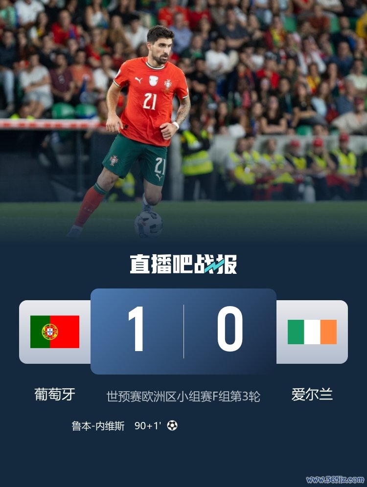 世预赛赛场,葡萄牙1-0险胜爱尔兰,鲁本·内维斯致胜球 ,C罗本场失点并另有一次中柱。