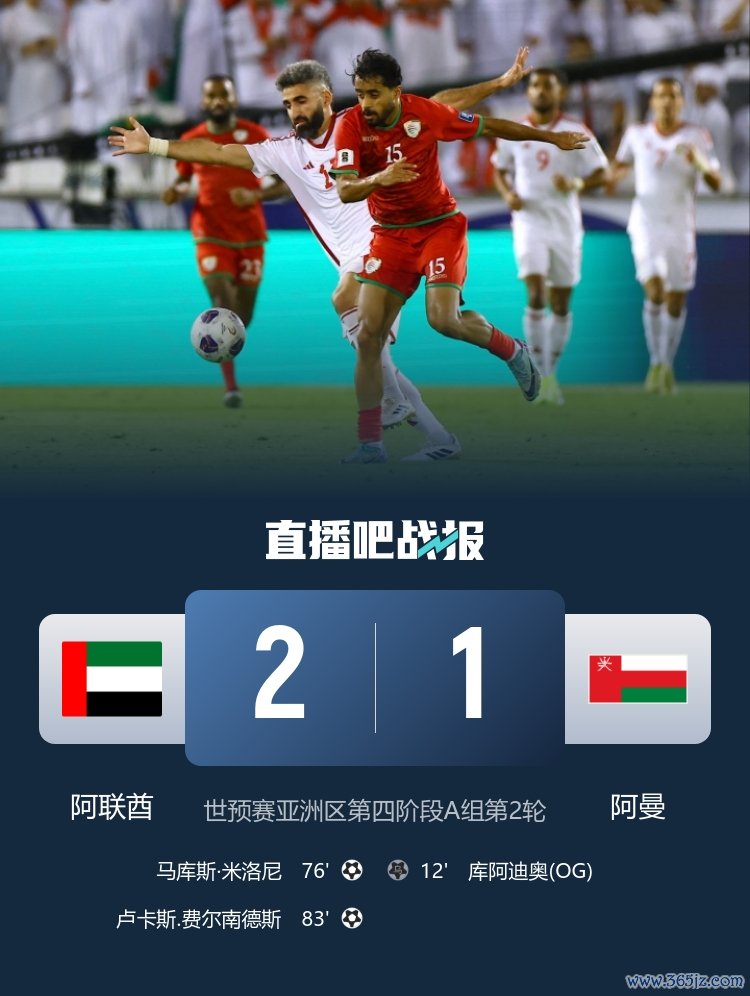 本轮世预赛阿联酋2-1击败爱曼,此役后阿曼垫底,搏击资讯阿联酋暂居榜首, 篮球新闻下轮将战卡塔尔。