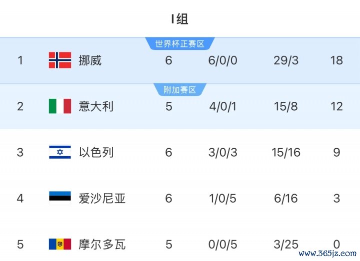 晋级下一轮 在望!挪威多赛一场6分优势领跑、净胜球领跑 意大利19个