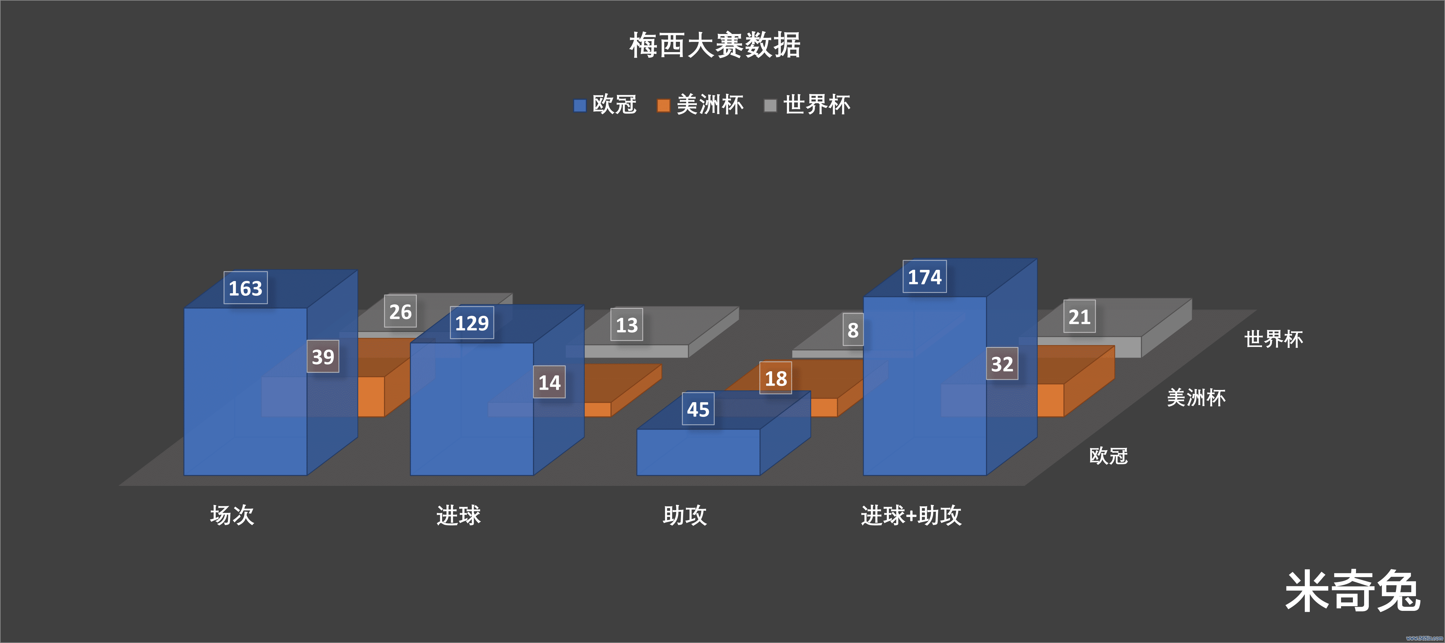 如果说日常赛事 数据含金量不高,那么梅西参加过的世界杯赛 、美洲杯和欧冠赛事 ,一共228场直接加入 的得分 +助功 =227球,差不多场均加入 1个得分 ,这样的表现让人信服。