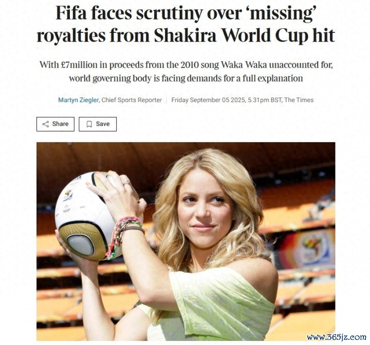 直播吧09月06日讯 据英媒《泰晤士报》报道,国际足联面临审查,他们被要求解释由夏奇拉演唱的2010年世界杯赛 主题曲《Waka Waka》的数百万镑版税,被花在了什么地方。