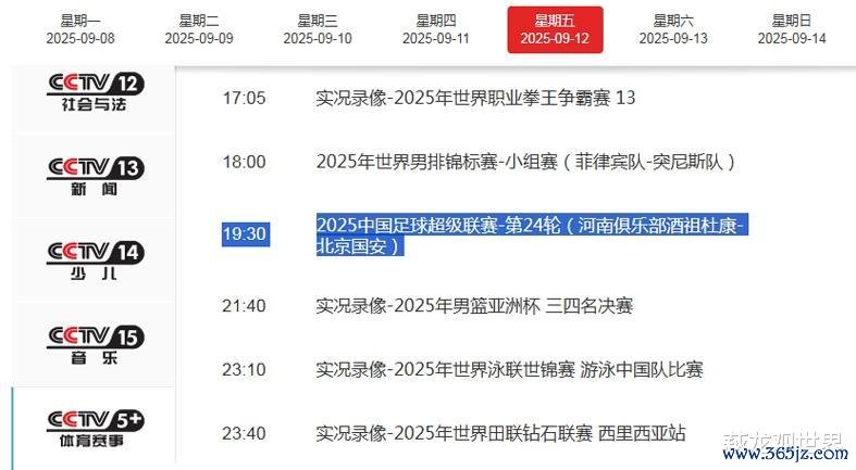 U22亚预赛结束,U22国足2胜1平,以小组第二的身份晋级下一轮 总决赛 阶段,希望明年给全国球迷带来更多快乐。接下来,球迷将目光转移动国内职业联赛 。北京时间9月12日19:35,中超第24轮一场焦点大战,北京国安将在客场应战 航海运动场 对阵河南队,央视运动竞赛 频道CCTV5+将进行现场直播。
