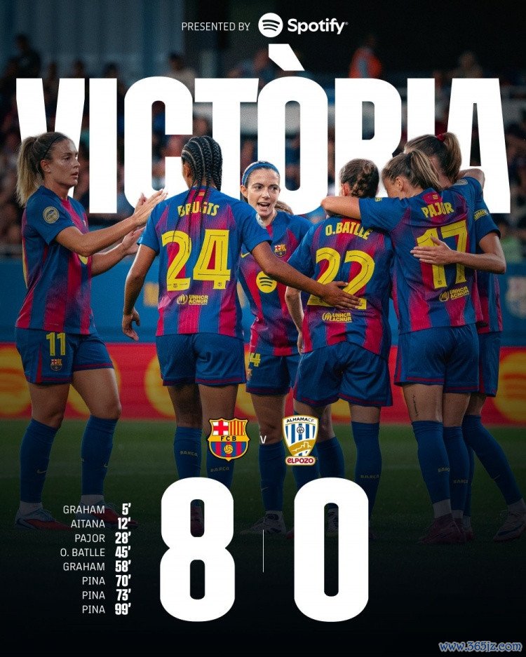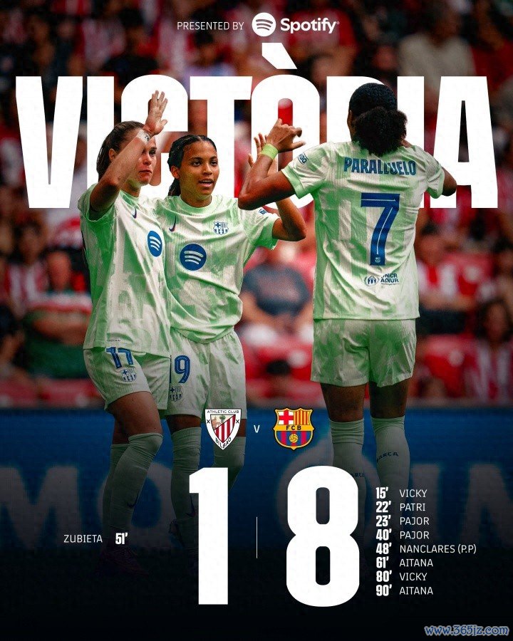 直播吧09月07日讯 西女甲赛事 第2轮,蝉联第一名 第一名 巴萨女足客场应战 以8-1的比分横扫毕尔巴鄂女足,取得2连胜。