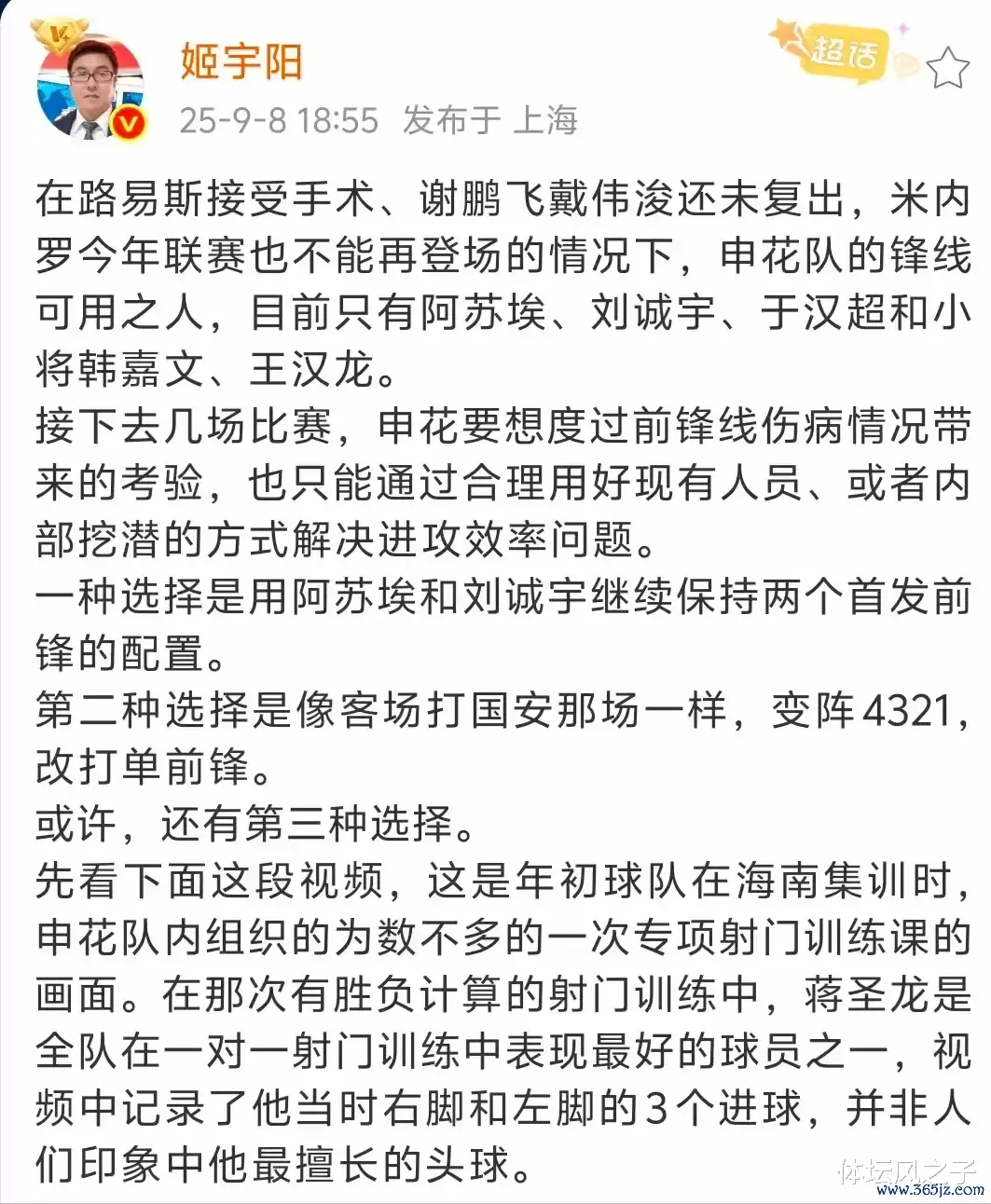 然而,就在本场赛事 的赛前申花却深陷锋线危机,这无疑是给泰山队带来了潜在利好。在上轮赛事 中,上海申花意外负于武汉三镇,球队士气与竞技状态 都受到一定影响。而此时,申花锋线又遭遇重创。知名记者姬宇阳发文透露,外援路易斯接受了手术,短时间内无法回归赛场,这样一来的话,申花将会再次损失一名外援,搏击资讯这对于球队影响还是非常大的。
